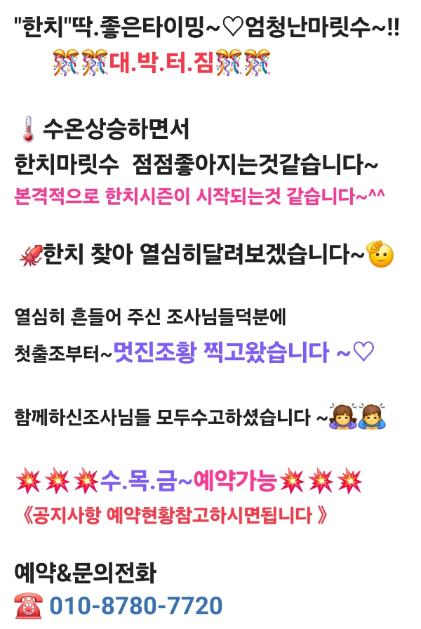 제목 : START "한치시즌"먹물폭탄 대박터짐~!! 마릿수 최고~!!!이제 시작이다!!(수.목.금~쭉~예약가능)