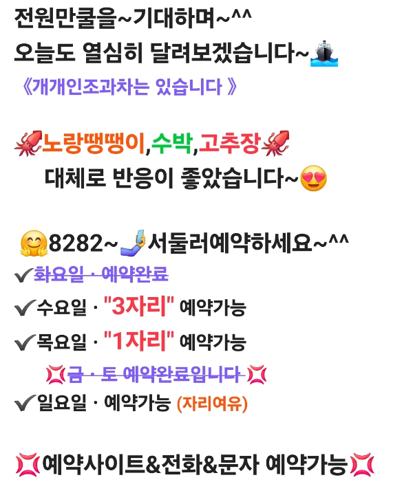 ![]() ![]() ![]() ![]() ![]() ![]() ![]() ![]() ![]() ![]() ![]() ![]() ![]() ![]() ![]() ![]() ![]() [뽀빠이피싱 밴드 초대] https://band.us/n/adaeA1N4H024T 《아래 예약사이트 바로가기!! 클릭!!》 ●바로예약하기● === 진해 뽀빠이피싱 예약안내 === 예약문의 : 010-8780-7720 오시는길 : 경남 창원시 진해구 진희로 36 (진해카페리선착장) 홈페이지 : http://popeye.sunsang24.com/ |