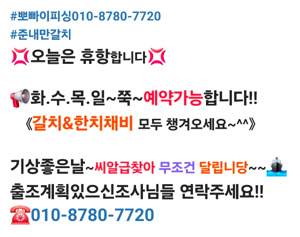 제목 : "준내만갈치"씨알급3지.4지~미친피딩!! 쿨러가득~(화.수.목~ 예약가능)